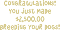 Aren't you glad you are finally making those big bucks  breeding dogs?